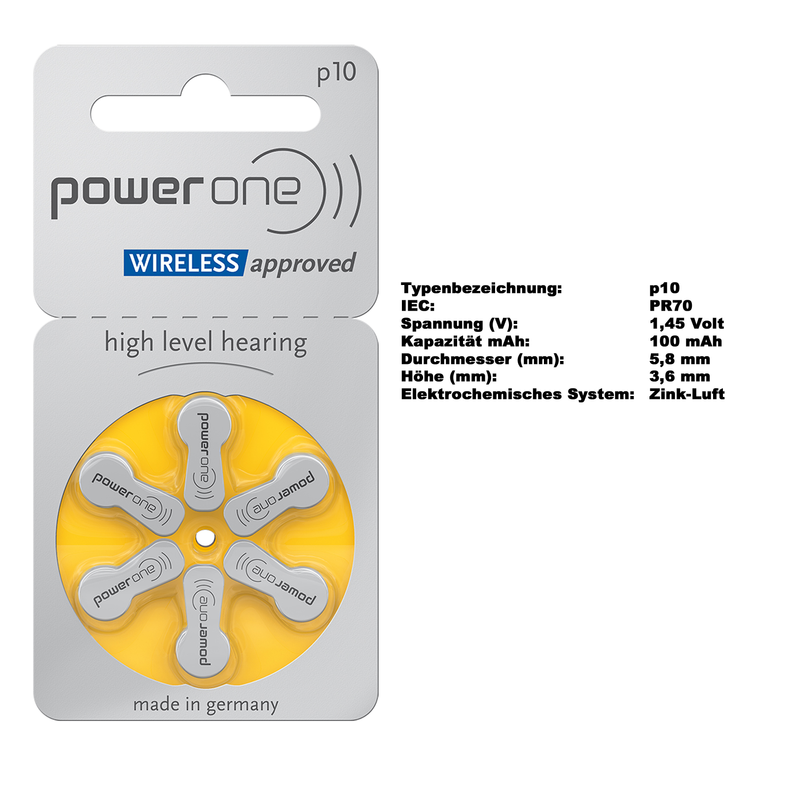 90 Stück PowerOne Typ 10 PR70 p10 Hörgeräte Batterie